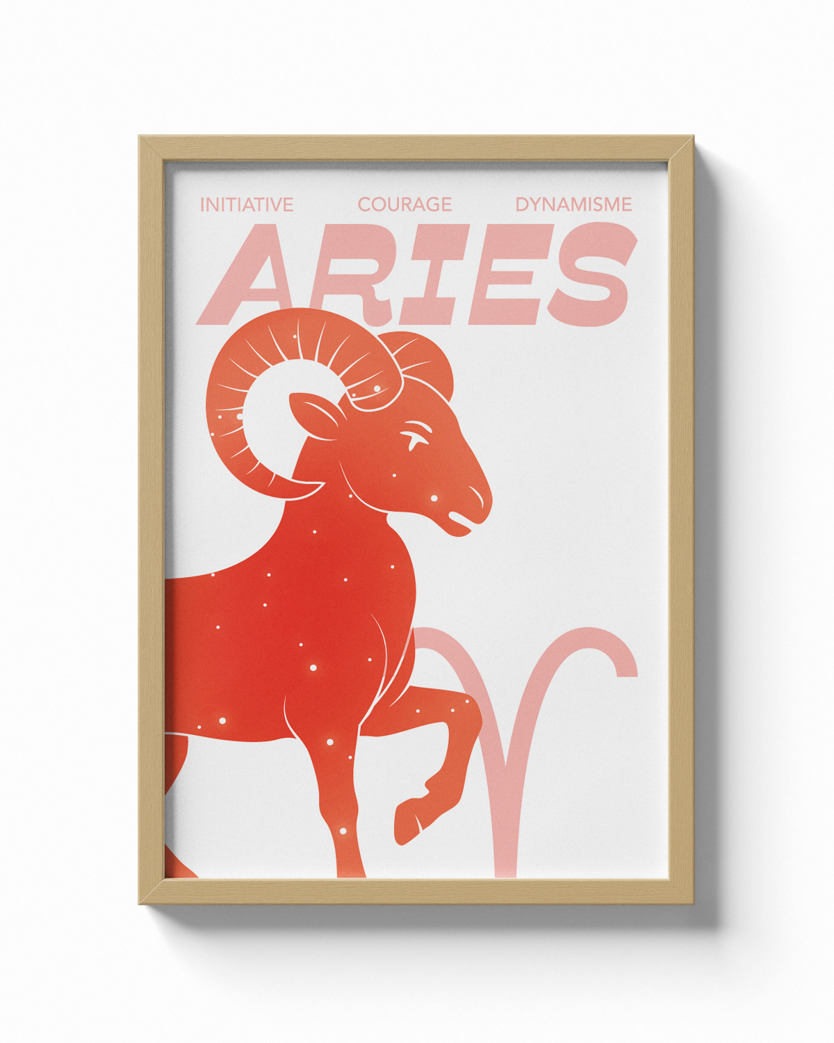 Grâce à son style épuré, cette affiche astrologique Bélier s’intègre facilement dans des intérieurs contemporains, scandinaves ou créatifs. Elle reste sobre, tout en affichant une forte personnalité. Son équilibre entre simplicité et énergie la rend très polyvalente.Cette illustration constitue aussi un cadeau astrologique idéal. Elle convient à un natif du Bélier, mais aussi à toute personne qui souhaite inviter plus de courage et d’audace dans son quotidien. L’affiche renforce la confiance, encourage l’initiative et rappelle que chaque action ouvre de nouvelles possibilités.
