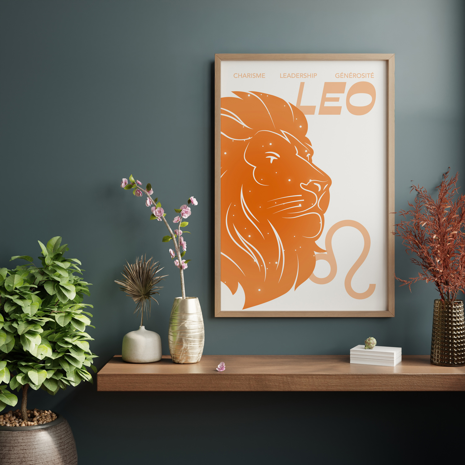 Avec son esthétique moderne et épurée, cette affiche Lion trouve naturellement sa place dans une décoration contemporaine, minimaliste ou artistique. Elle convient parfaitement à celles et ceux qui veulent apporter une note de vitalité, de confiance et d’expression personnelle à leur intérieur. Elle constitue aussi un cadeau astrologique idéal pour un natif du Lion ou pour toute personne cherchant à incarner davantage de rayonnement et de générosité.