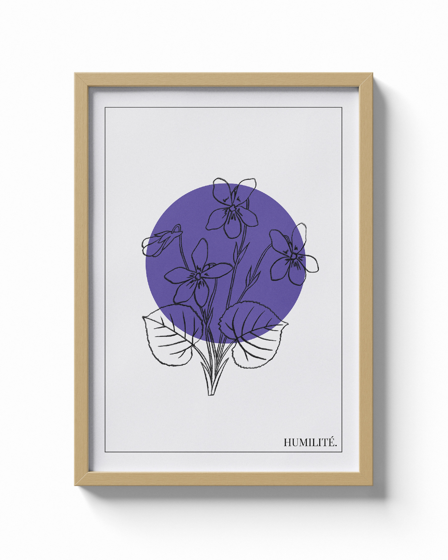 Apportez une touche de délicatesse et de sincérité à votre intérieur avec notre affiche Violette / Humilité. Inspirée par cette petite fleur discrète qui s’épanouit sans éclat tapageur, cette création évoque la force tranquille, la simplicité et la beauté de l’humilité.